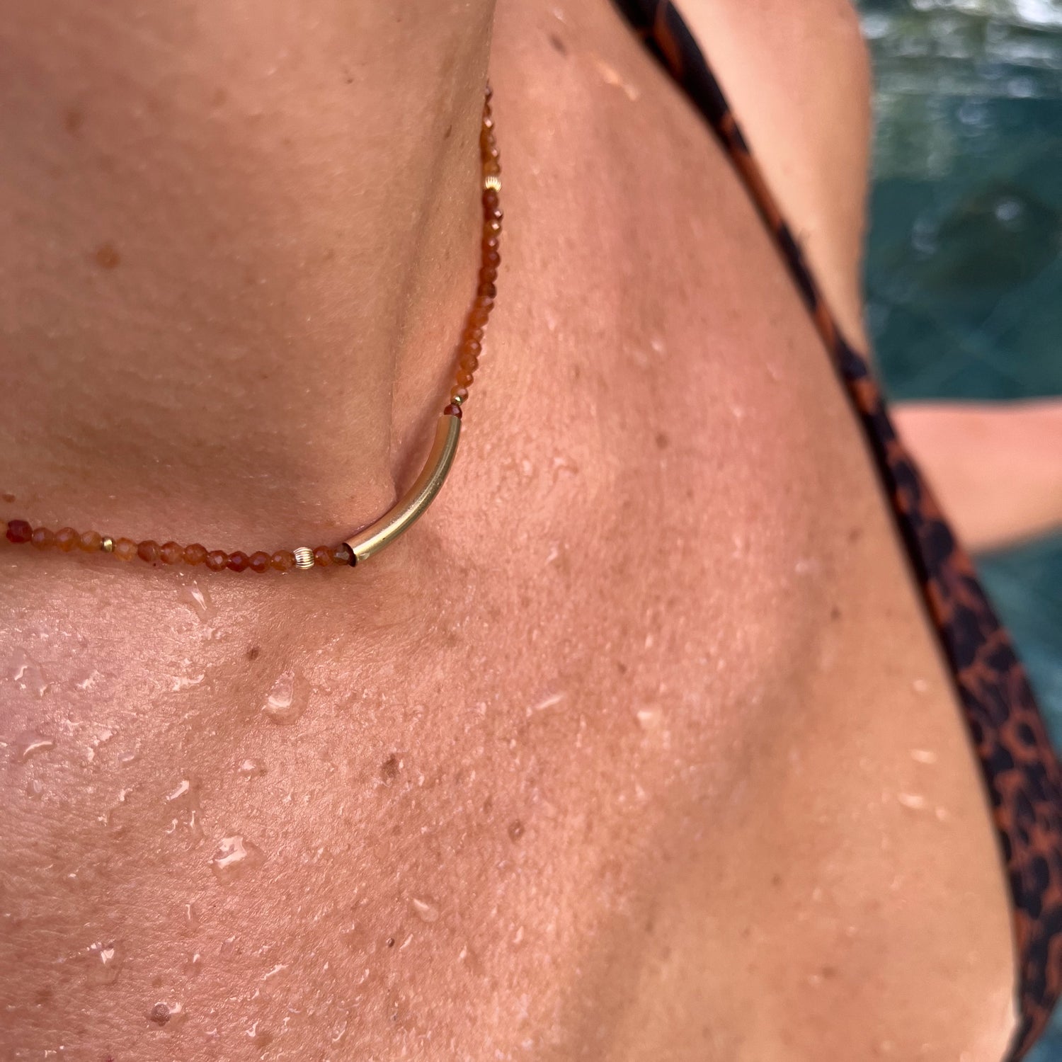 Les améthystes aux teintes violettes subtiles, les turquoises rappelant les lagons tropicaux, les quartz roses délicats ou les jaspe aux nuances terreuses, apportent à chaque bijou une touche de couleur vibrante et authentique. Chaque pierre, pleine de caractère et de signification, est un symbole de la beauté brute et primitive de la nature, tout en offrant des vertus énergétiques qui se mêlent harmonieusement à l’esprit de la collection.