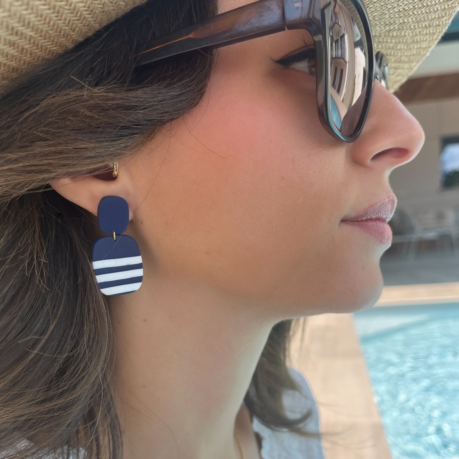 Belles et délicates les boucles d'oreilles Gaëlle en argile sont très légères pour les oreilles et apportent autant de simplicité que d'élégance, pour un tour en bateau comme pour tous les jours.