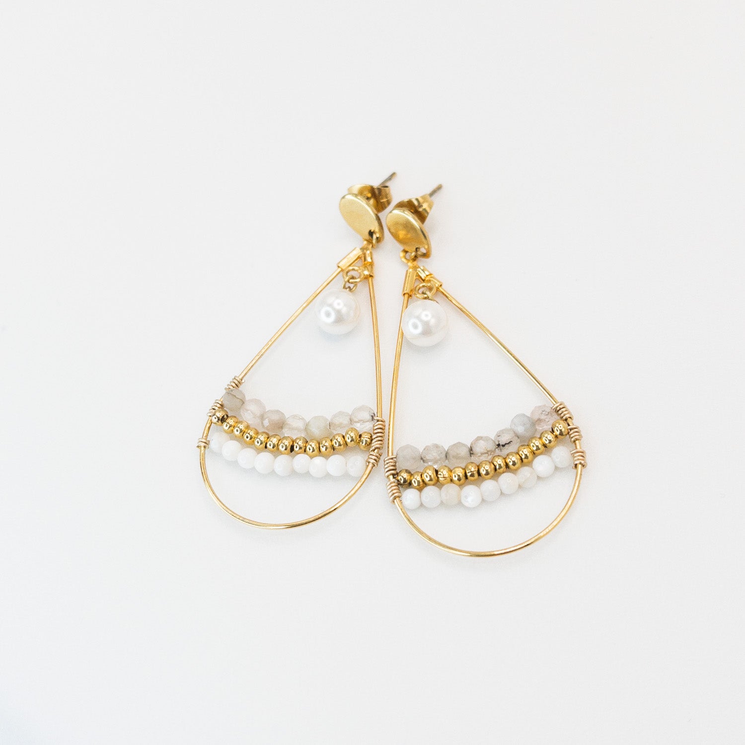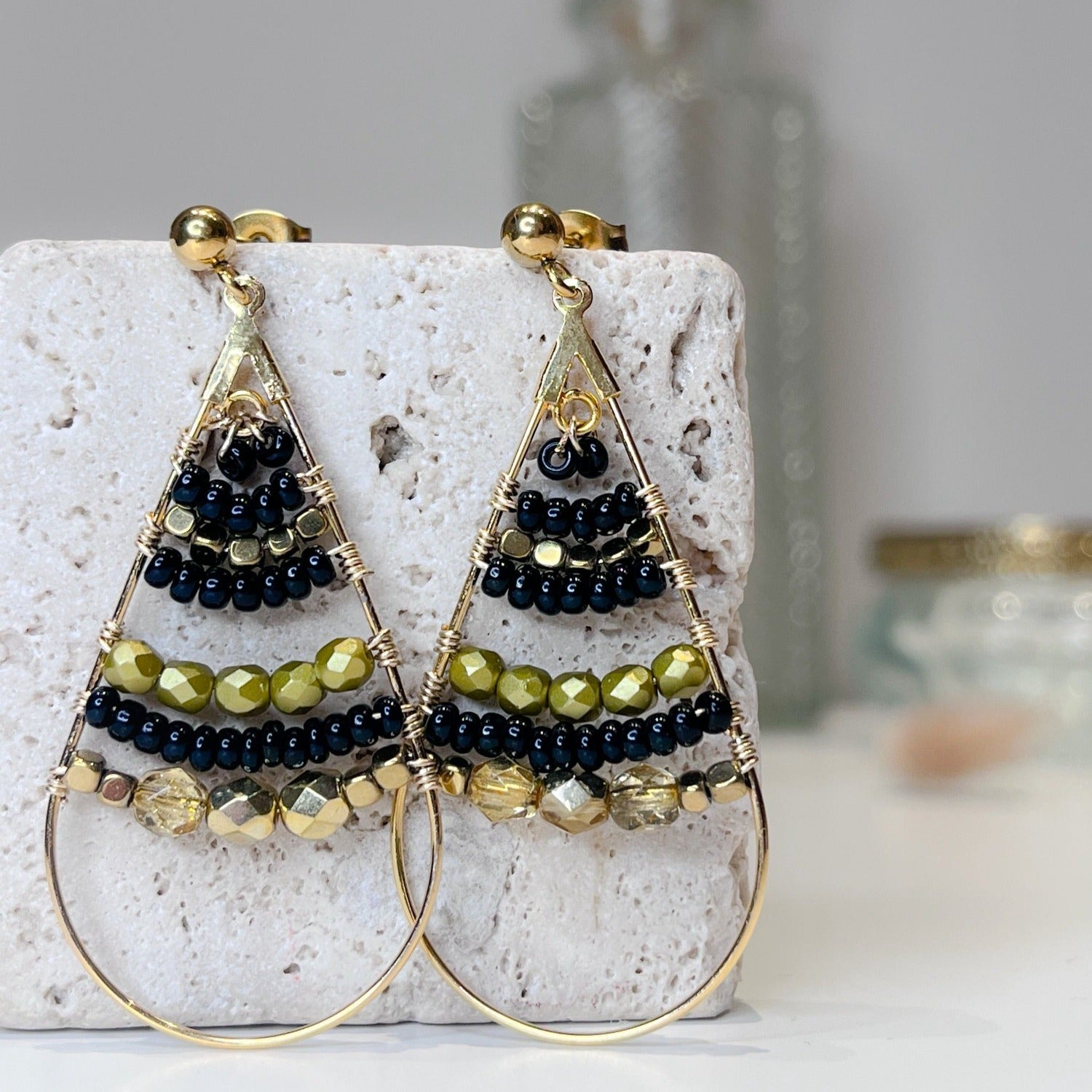 Les Boucles d'oreilles Nina ont la forme d'une goutte d'eau et sont ornées de belles pierres et perles qui donnent un style ethnique chic à ce modèle.