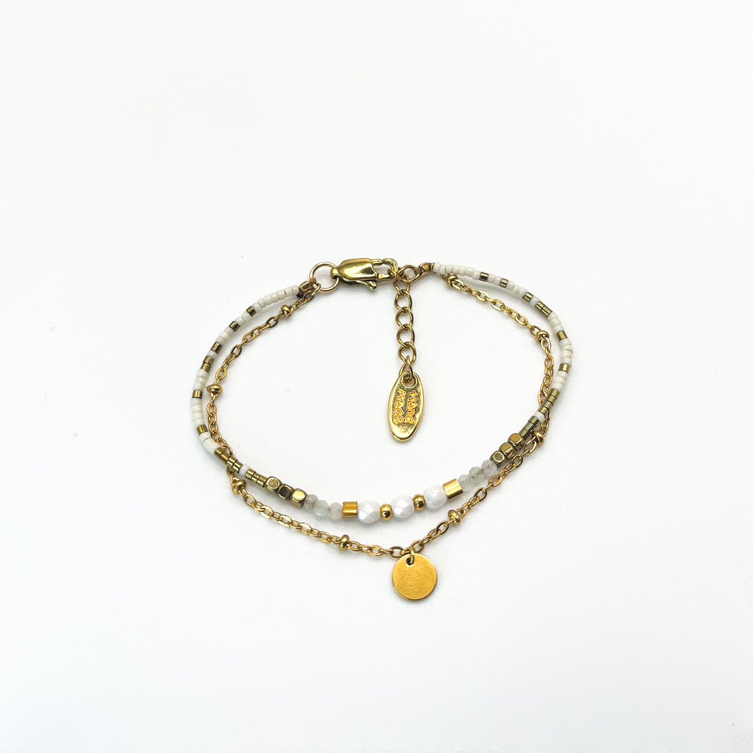Bracelet double Maël avec sa chaine en acier inoxydable et ses perles et pierres semi-précieuses.