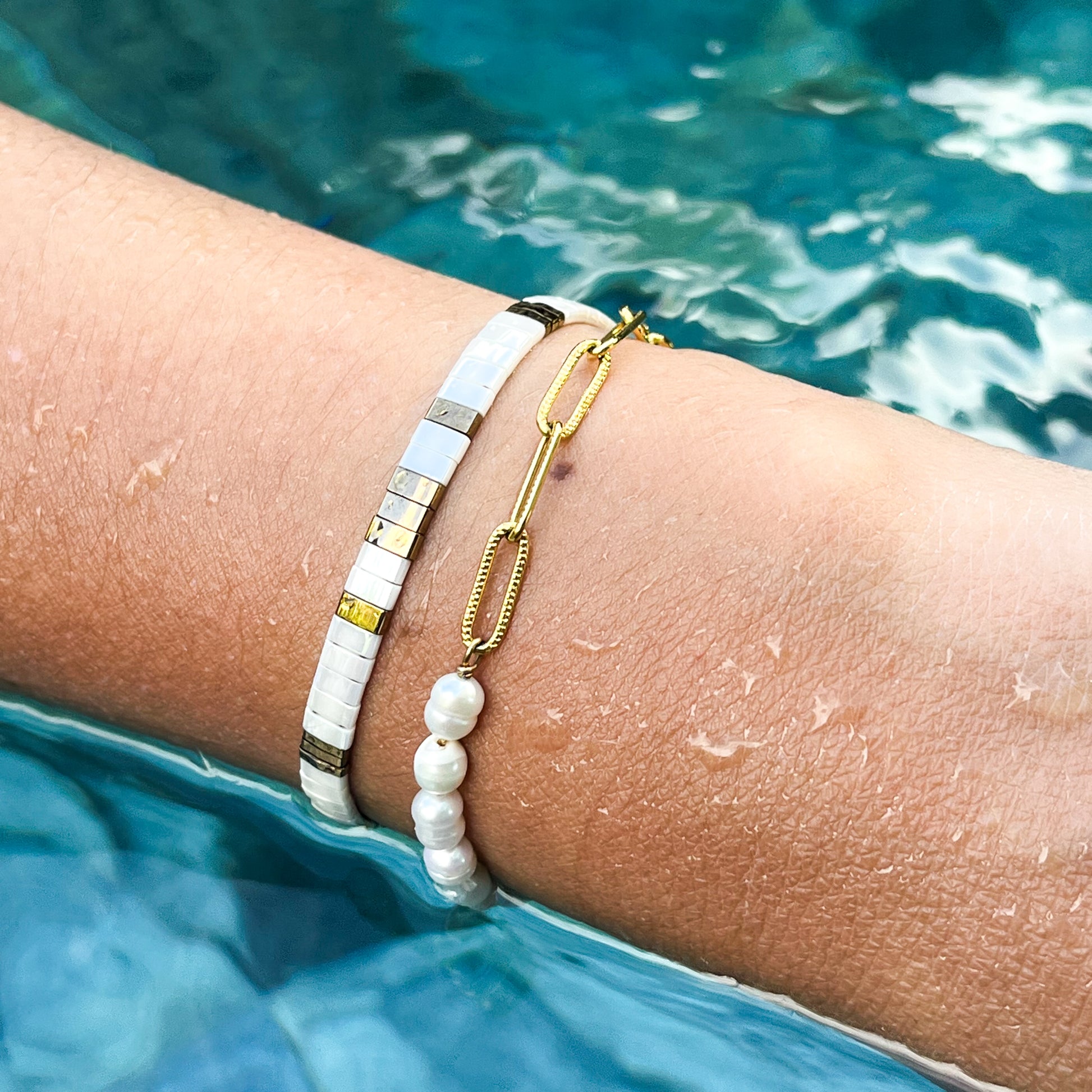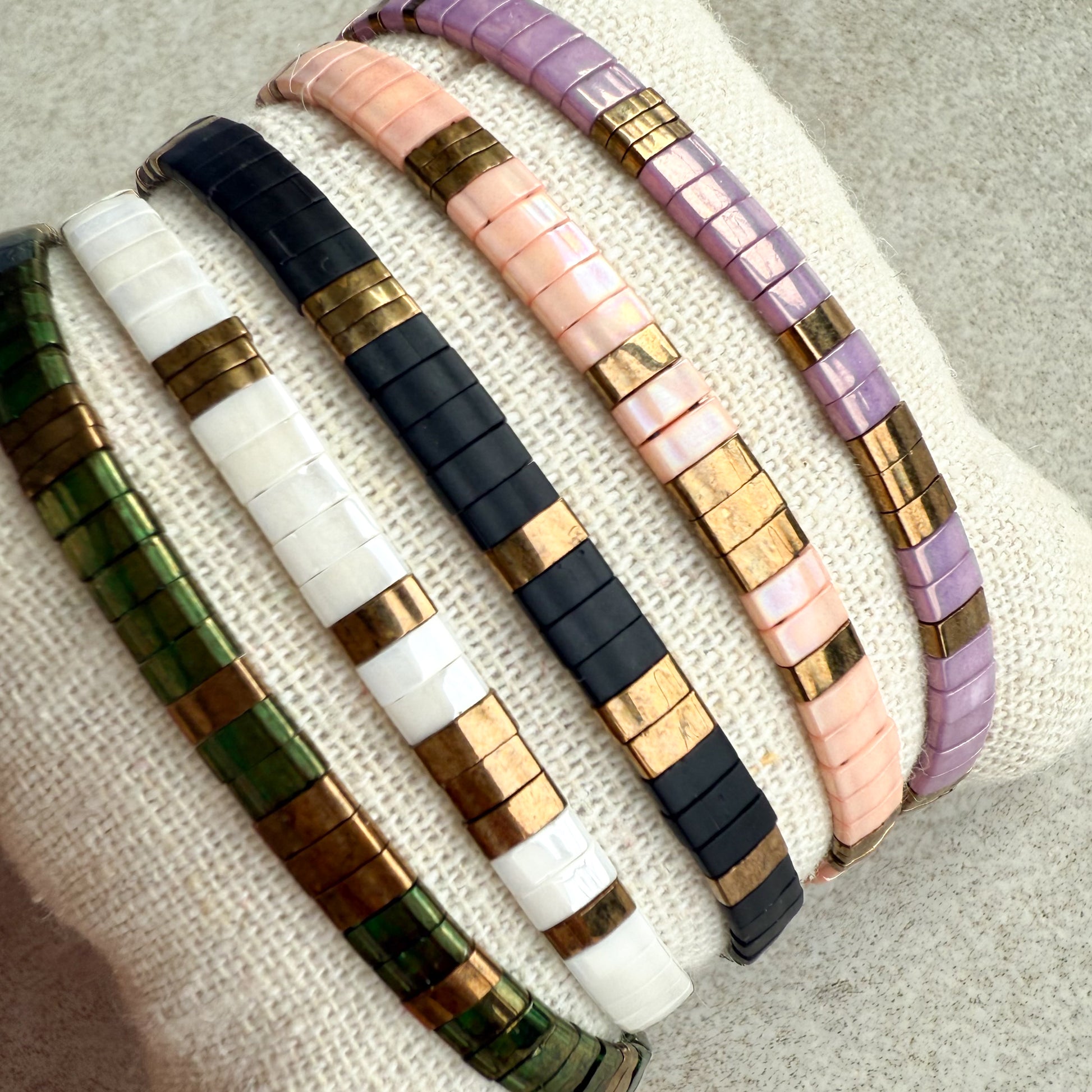 Ajoutez une touche d'élégance et de style à votre poignet avec le bracelet Tila Gold. Fabriqué avec des perles japonaises en verre, retrouvez le de 5 couleurs différentes. Ce bracelet est parfait pour une accumulation de bracelets tendance. Ajoutez-le à votre collection pour un look unique et chic.