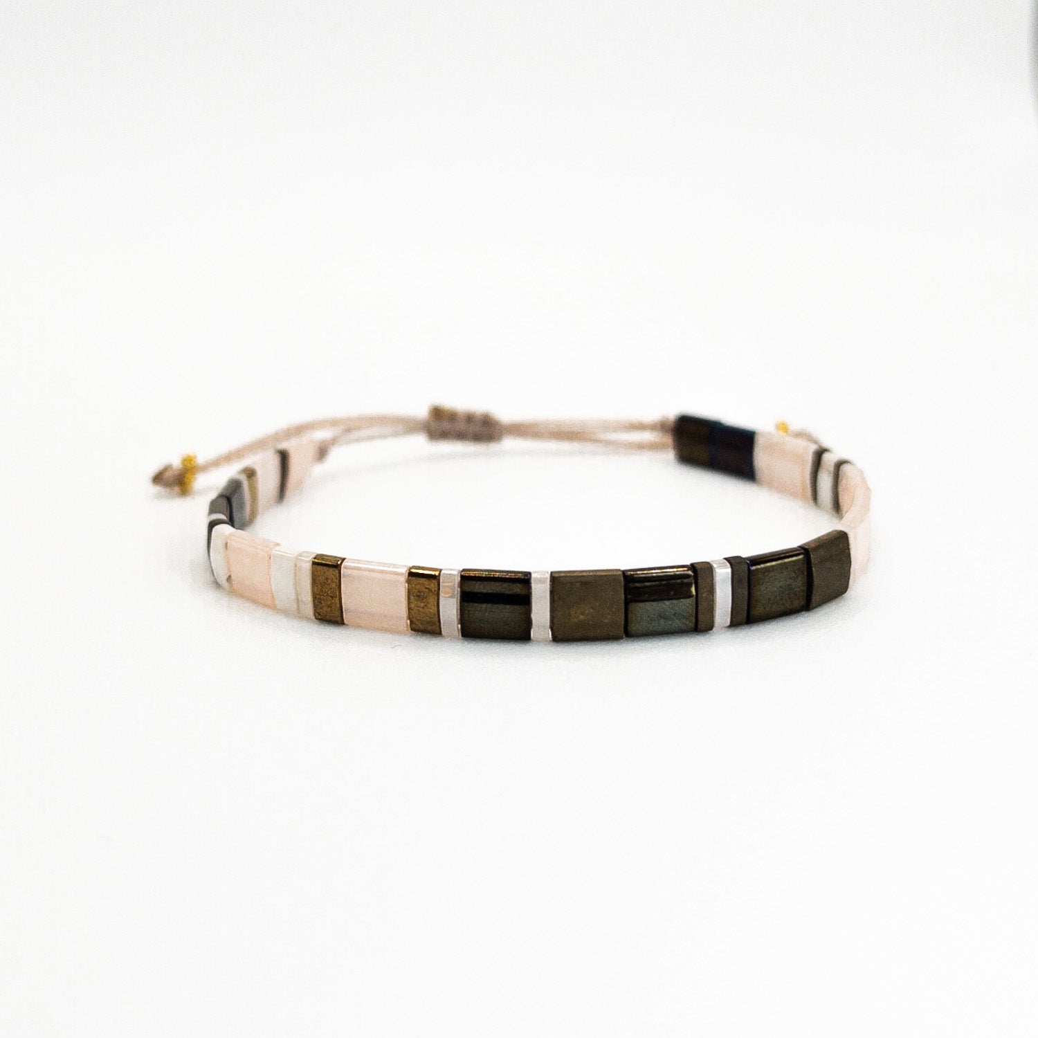 Bracelet en perles japonaise de colories et de tailles diverses. Monter sur un fil réglable pour s'adapter à toutes les tailles de poignets.