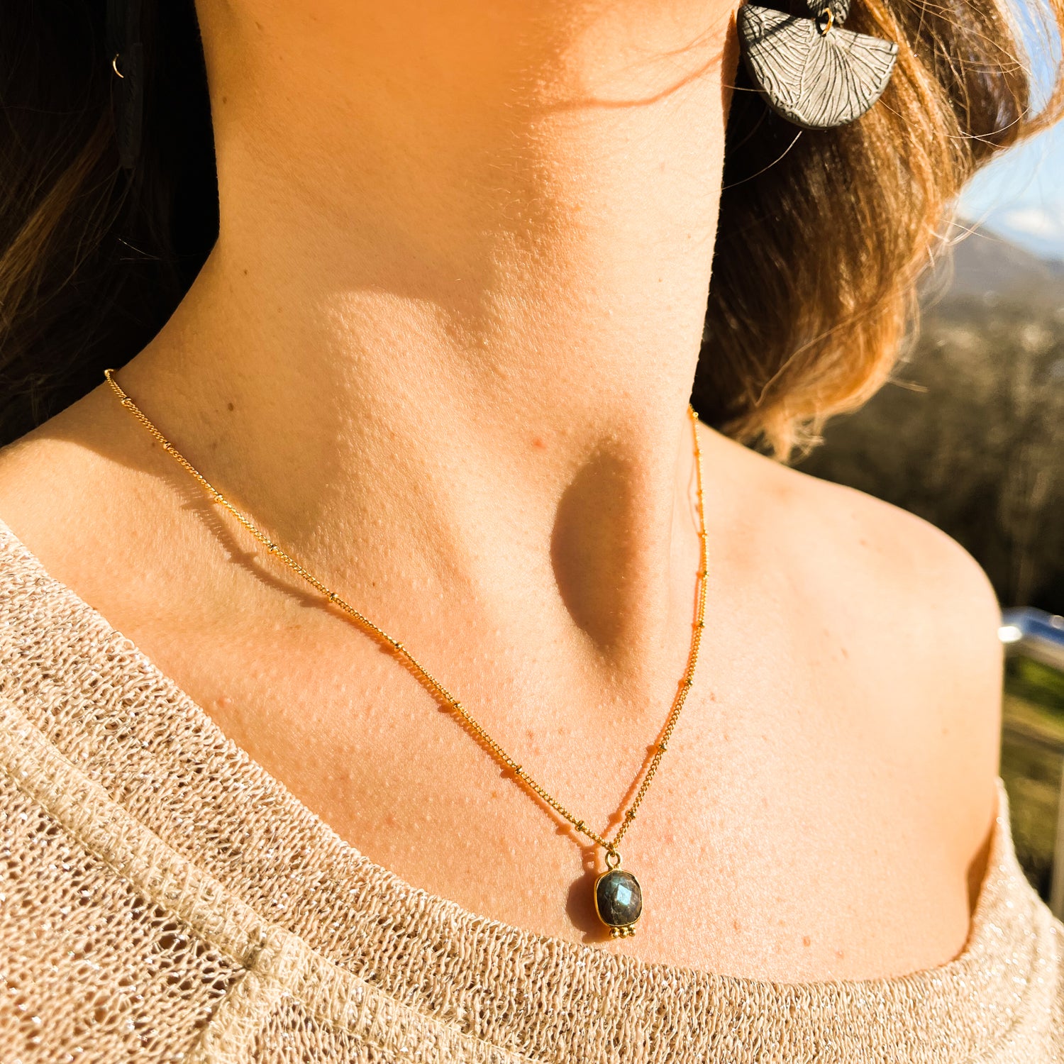 Breloque carrée en pierre facettée Labradorite.